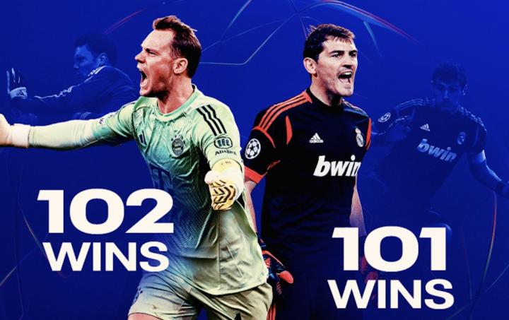 这下,39岁的德国门神诺伊尔在欧冠赛场上已经斩获102场胜利,直接把西班牙的传奇门将卡西利亚斯给比下去了,成了欧冠历史上胜场最多的门将,这波操作,666!